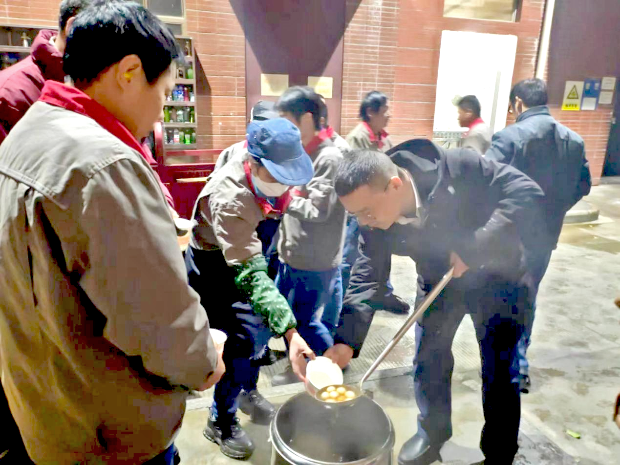 面对员工饱满的工作热情,在冬至到来之际的寒冷夜晚,公司人力资源总监胡坤丽与各子分公司工会主席带着深切牵挂,前往生产一线,向持续奋战的员工表示关心和问候。各公司工会细心地为员工们准备了热乎的红糖水和甜甜糯糯的汤圆,希望这传统的冬至食品能为辛勤工作的员工们驱散寒冷,带来一丝家的温馨。